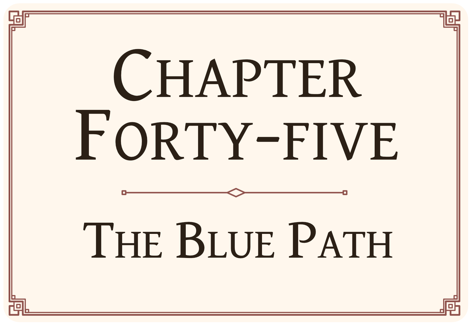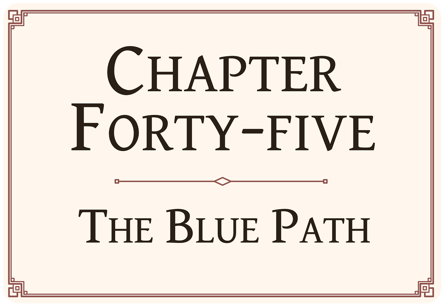 The sun shone brightly in the morning sky when they left the stone building and found their way to the blue path, the network of walkways covered in blue rooftops. As before, they encountered few along the way, except two or three maids who eyed them curiously, and two swords embroiled in a debate about the fastest route across the mountain road.
