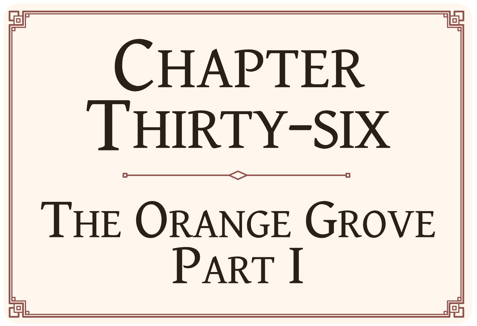 The air within the grove was pleasantly still and warm, though a cool breeze rustled through the leaves and caused the oranges to sway. The strong, sweet scent was making So Ga’s mouth water. Min La reached for one of the oranges, as if considering picking one and eating it. So Ga grabbed his arm and pulled it away.